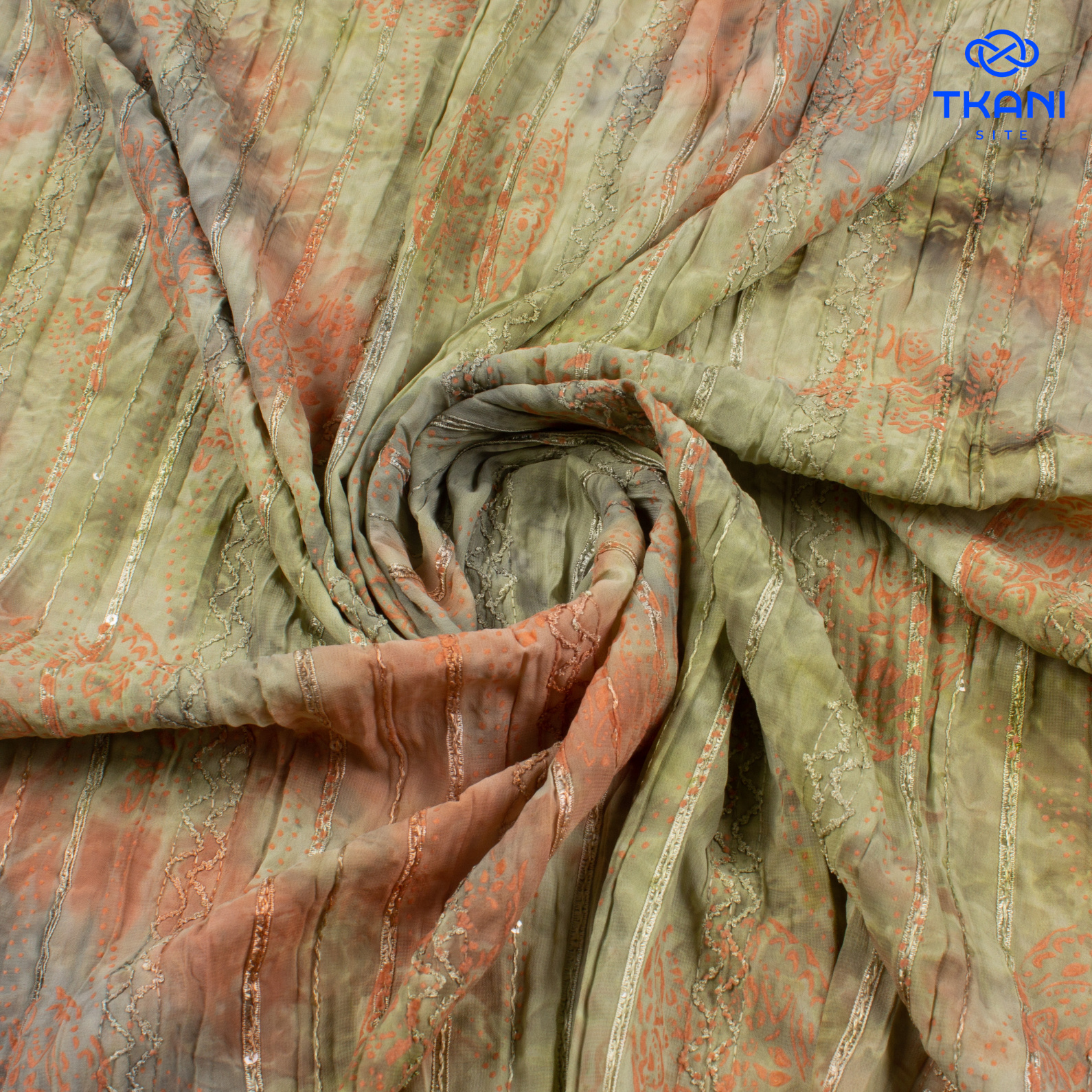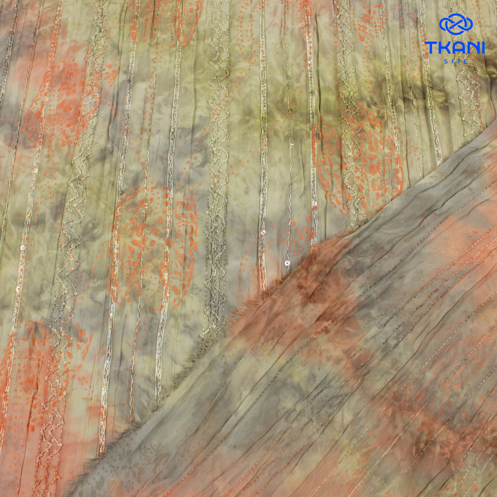 1361. Шифон крэш. Тай-дай. С вышивкой сутажной лентой и пайетками. Принт.